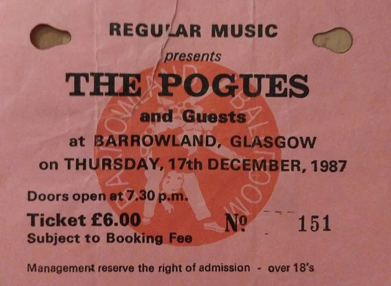 Ticket to the show where the first live version of Fairy Tale of NewYork was performed.