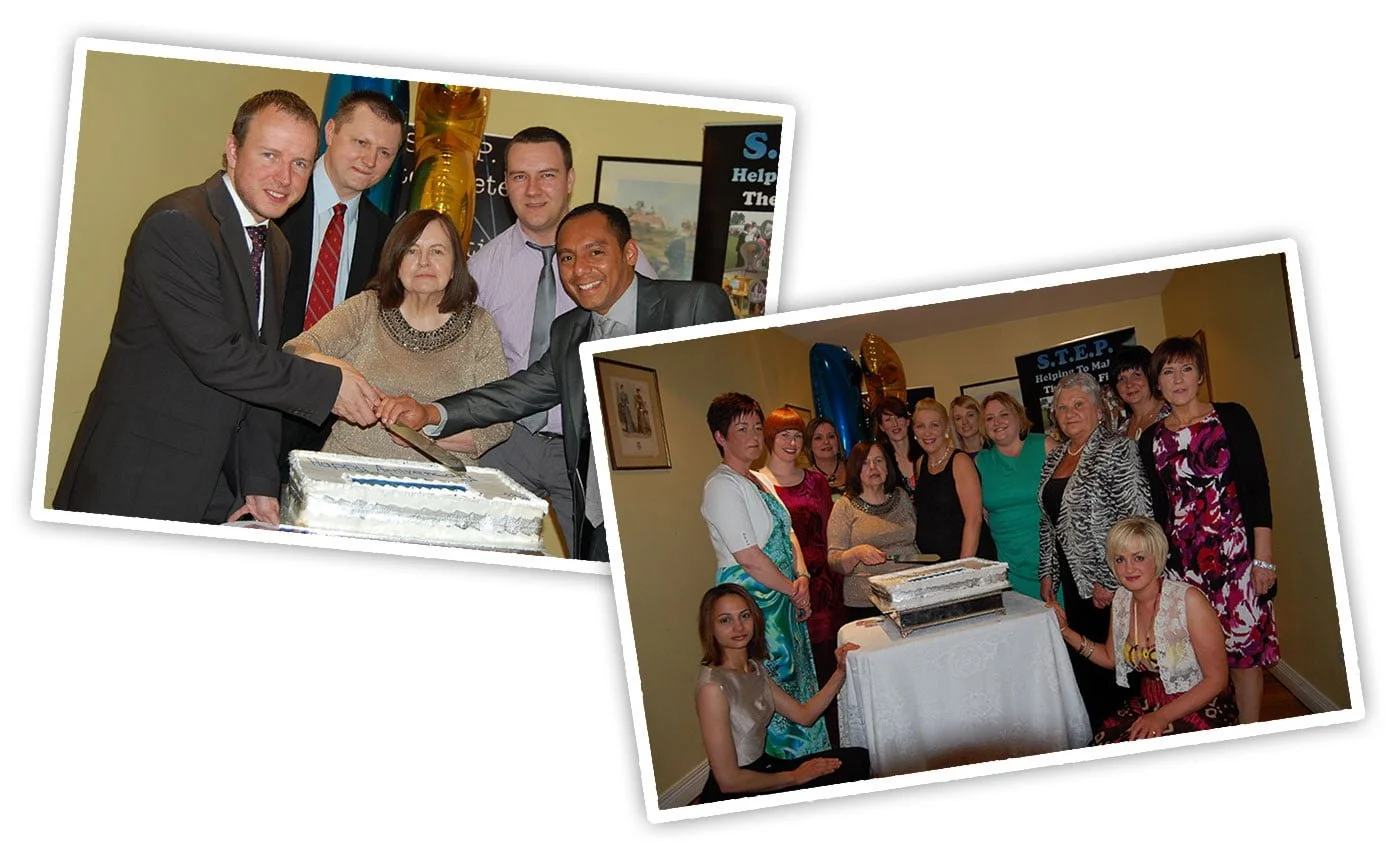 Cutting the cake with co-workers in Co. Tyrone at the offices of the South Tyrone Empowerment Program.