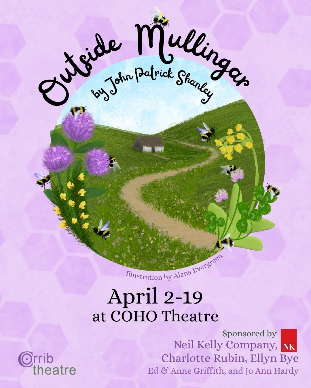 Corrib Theater’s production of Outside Mullingar, the play that came of Shanley’s Irish adventure when he was 42, opens April 2 at the Coho Theater. TICKET INFO. While it never attracted the acclaim or awards that his two best-known works did, it offers a quirky cast of characters, each offbeat in their own way, enough laughs to merit a night at the theater and the occasional existential twist.
