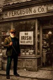 No-Irish-Need-Apply type discrimination couldn’t have been systemic since enough Irish were hired to eventually manage many parts of the “system.” Men and women with roots in Ireland rose to the top in America across the board despite the same kind of top-down discrimination faced in the USA by anyone who wasn’t a WASP with money back then. So, for argument's sake, let’s say that individuals did the discriminating, not “the system.” Which brings me to the above image for H. Ferguson & Co.