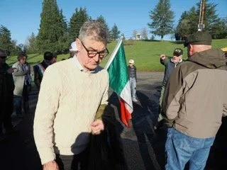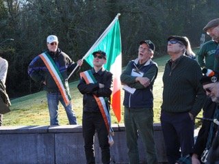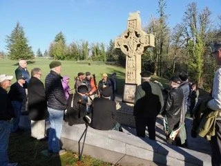 Saint Patrick's Day at the Oregon Potato Famine Memorial at mount Calvary Cemetery 2023. Left to right. Brian Doherty, Bill Gallagher and Maddie Andrews.